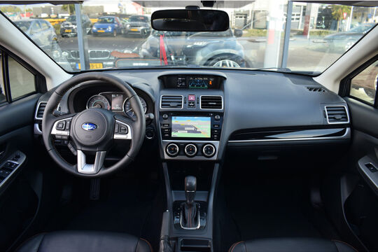 Het doordachte ontwerp van de Subaru XV maakt hem tot een comfortabele en veelzijdige auto voor het hele gezin. Met zijn benzinemotor en automatische transmissie is dit een prima auto voor nog vele kilometers. Niet alleen de stoelen, maar een compleet lederen interieur. Dat krijgt u er allemaal bij, inclusief het elektrisch bediende glazen panorama dak. Stoelverwarming maakt het leven in deze auto aangenaam op koude en winterse dagen. Xenonverlichting zorgt in het donker voor beter zicht. Bij de rijke uitrusting horen ook 17 inch lichtmetalen velgen, dakspoiler, donker getint glas achter, in delen neerklapbare achterbank, LED-achterlichten en snelheidsafhankelijke stuurbekrachtiging.
