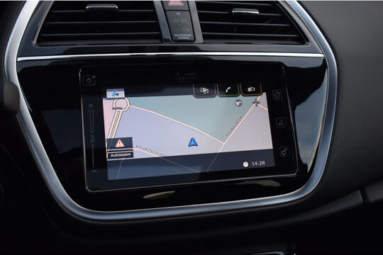 Een vergeten muurtje, een verborgen paaltje? Dat gebeurt niet meer, dankzij de achteruitrijcamera. Met adaptive cruise control houdt deze auto automatisch afstand tot uw voorligger. In deze S-Cross vindt u niet alleen schakelaars op het stuur om het audiosysteem te bedienen en het full map navigatiesysteem, maar er is ook spraakbediening. De achteropkomend verkeer waarschuwing is een mooie veiligheidsoptie, die middels sensoren in de gaten houdt wat er onderweg achter u gebeurt. Natuurlijk is er ook automatische airconditioning aanwezig. Extra opties op deze auto zijn: regensensor, automatisch dimmende binnenspiegel, lederen stuur, isofix-aansluiting, centrale deurvergrendeling met afstandsbediening en boordcomputer.